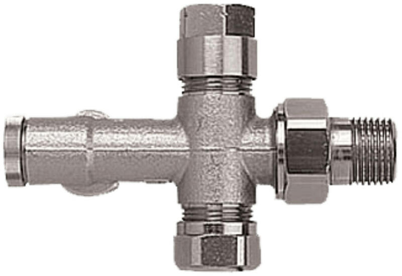 HERZ 1000 Bypass-test, sarok kivitelű kétcsöves kétpontos radiátorszelep, 1/2" x G3/4" Bypass egység kétcsöves rendszerhez, 100%-os vízosztással, a szelep elzárható és szabályozható. Kétcsöves vízfűtéses rendszerekhez, amelyek kalibrált acél-, réz- vagy műanyag csövekből készülnek. Rendszerfelújításnál (fűtőtestcserénél vagy lemezes fűtőtestek tagjainak cseréjénél) VT-szelepek helyett. A kétcsöves Bypass test a fűtővíz 100%-át átáramoltatja a radiátoron. Kétpontos radiátorszelep elemei A fűtőtest-csatlakozó készletek szabályozószelepből, csatlakozócsőből, bypass egységekből és csőcsatlakozásokból állnak. Valamennyi alkotóelem nikkelezett kivitelű és az igényeknek megfelelően egymással kombinálhatók. Az egyes alkatrészeket, szerelvényeket külön kell megvásárolni. A bekötési irányokra figyelni kell! A Bypass szelep csak akkor működik rendeltetés szerűen, ha az előremenő és visszatérő csonkok folyási iránynak megfelelően vannak bekötve. Helytelen bekötés esetén a radiátor nem fog megfelelően fűteni. Az előremenő csonk a radiátorszelep radiátorhollander felőli oldalán található. Ha régi rendszernél nem tudjuk eldönteni, hogy melyik az előremenő vezeték, akkor segíthet ha a fűtési osztónál megbontjuk a kötést és a csőbe levegőt fújunk, ezáltal a radiátornál kitudjuk választani, hogy melyik cső az előre menő, vagy a visszatérő. Egycsöves rendszernél ehhez természetesen meg kell találni az első radiátort ami az osztóról kapja a vizet. Műszaki adatok